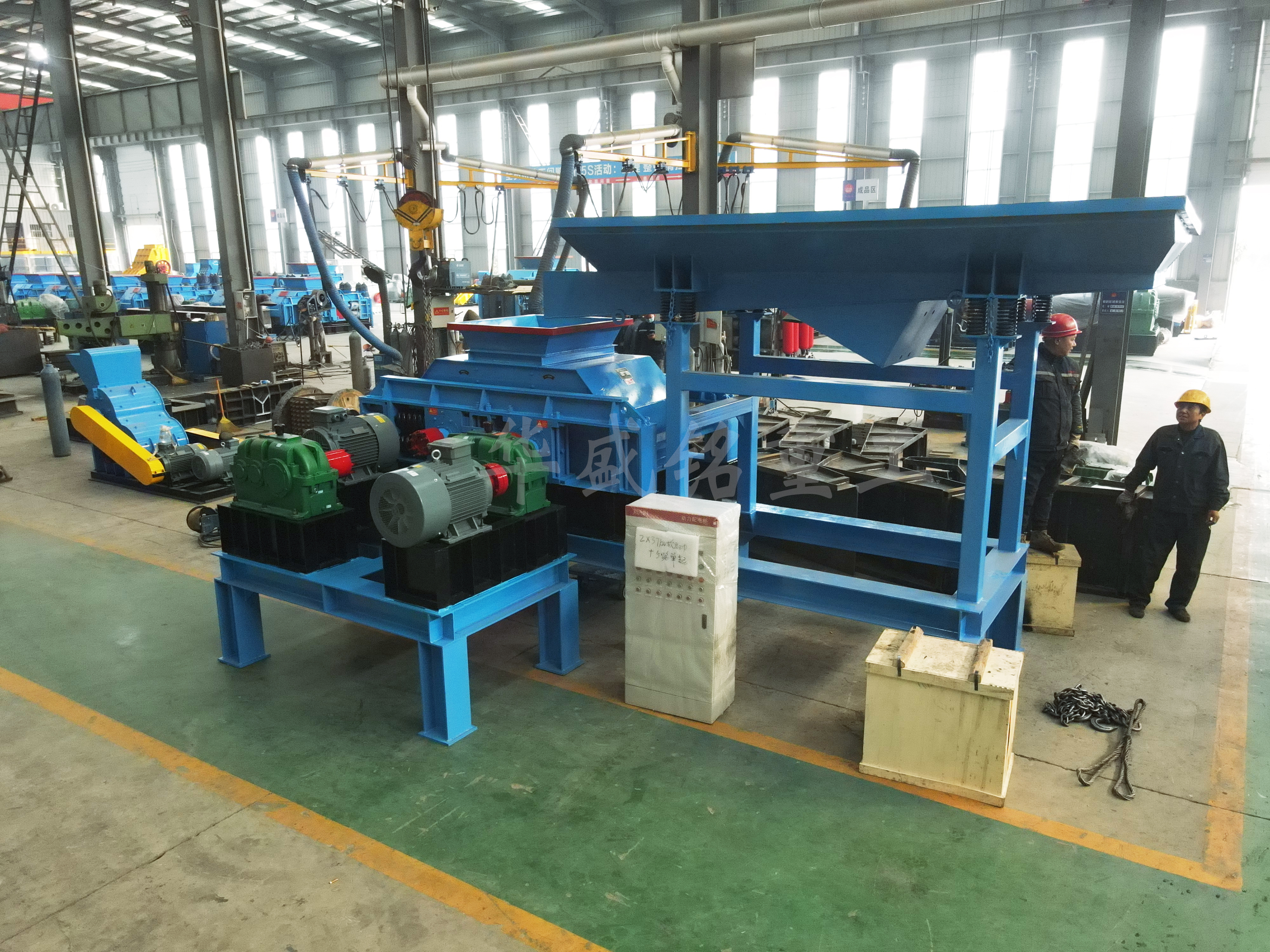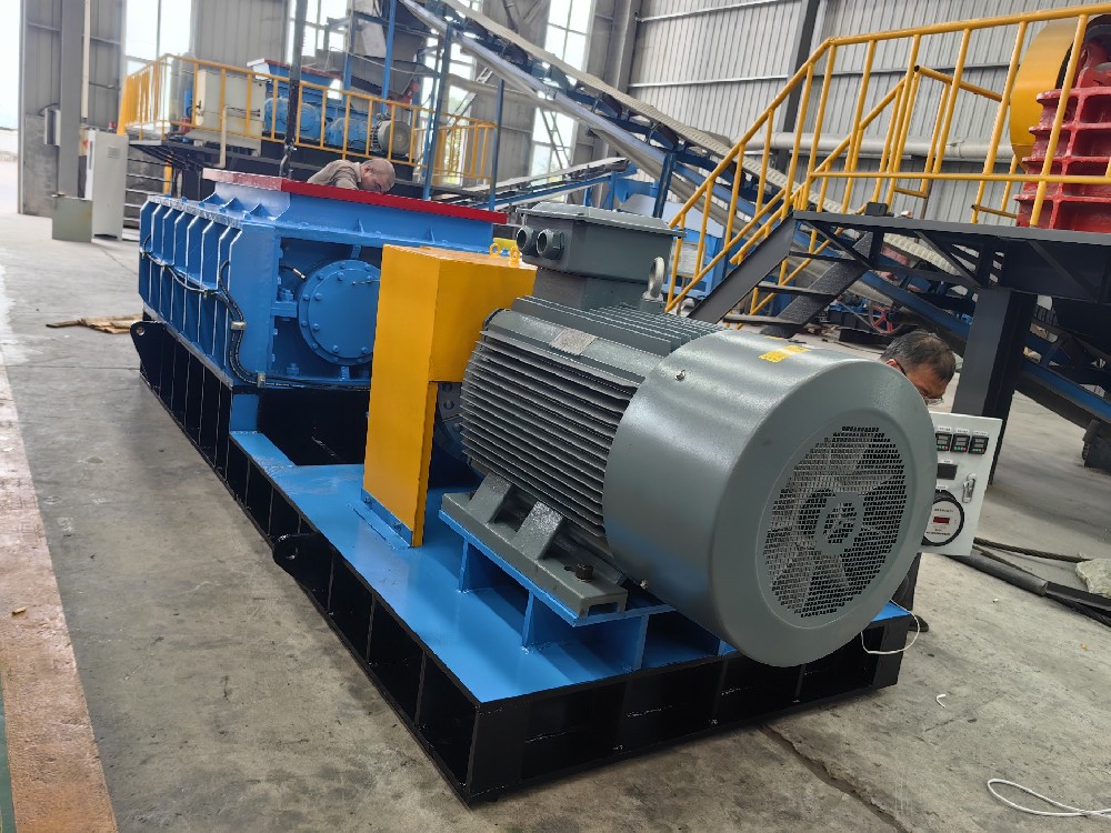 強力分級齒輥破碎機主要由兩個水平安裝且相互平行的齒輥組成,齒輥表面有破碎齒。齒輥通過傳動裝置(可以是單電機傳動或雙電機傳動)相互轉(zhuǎn)動,使得破碎齒產(chǎn)生沖擊剪切和沖擊拉伸的作用。待處理的瀝青再生料通過給料裝置均勻地進入破碎腔內(nèi)。隨著齒輥的相對運動,瀝青再生料被夾持在齒輥之間,受到強大的破碎力作用。破碎過程中,剪切力沿著物料的薄弱易碎部位產(chǎn)生破碎力,使其迅速破碎成小顆粒。物料在兩個破碎輥之間以及與側(cè)壁的梳齒板之間排出,產(chǎn)品的出料尺寸受到這些間隙的控制。這樣可以避免產(chǎn)生過大顆粒,并且能夠迅速將已經(jīng)達到合格粒度的物料排出,避免重復(fù)破碎,從而減小出粉率并增大產(chǎn)量。強力分級齒輥破碎機能夠?qū)r青再生料進行破碎和分級,獲得符合要求的再生產(chǎn)品。