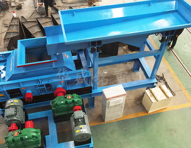 雙齒輥破碎機是利用兩個耐磨合金齒輥,相對旋轉產生的高擠壓力來破碎物料,物料進入兩齒輥間隙(V型破碎腔)以后,在擠軋、剪切和嚙磨下,將物料破碎成需要的粒度然后由輸送設備送出。